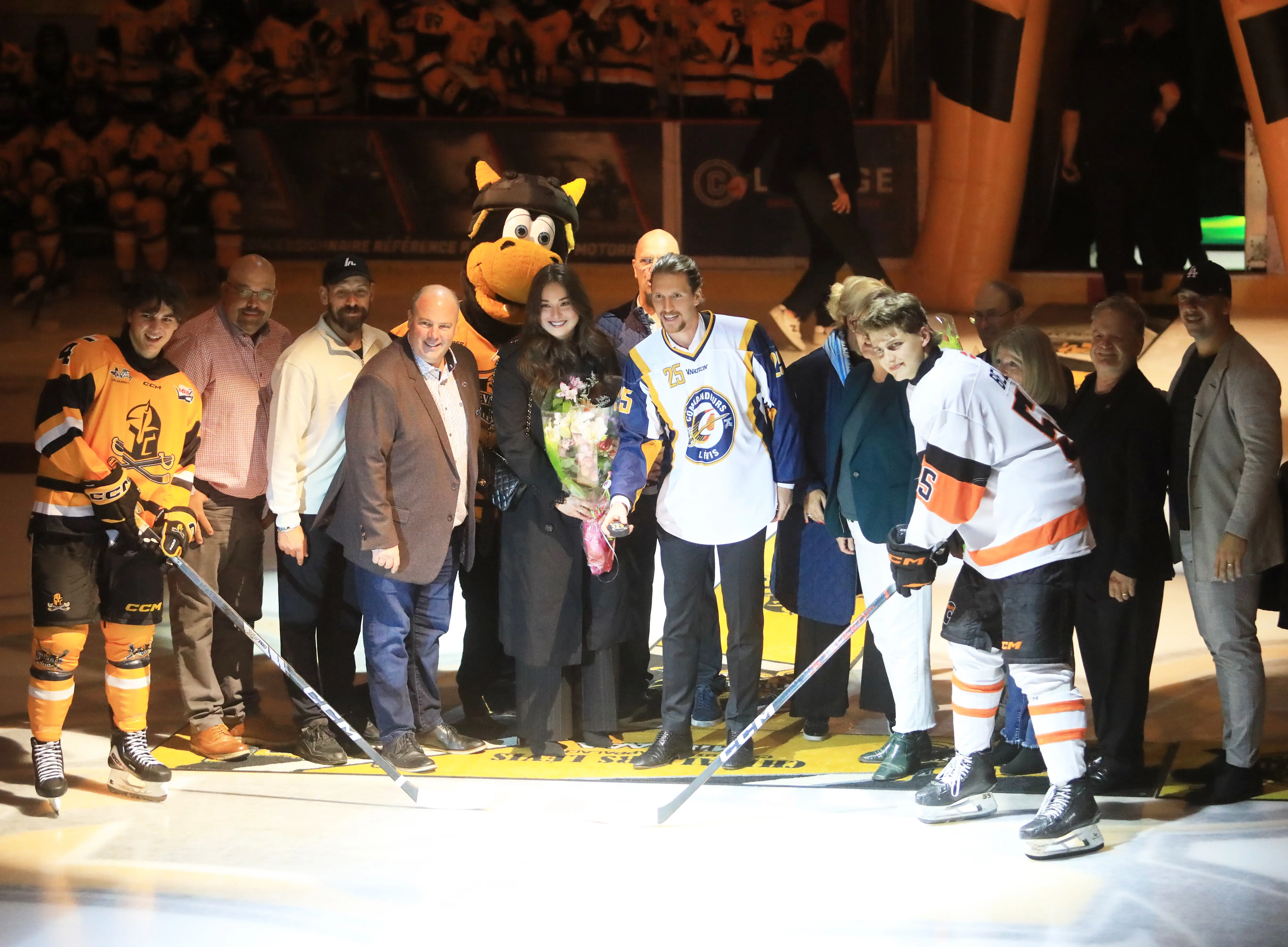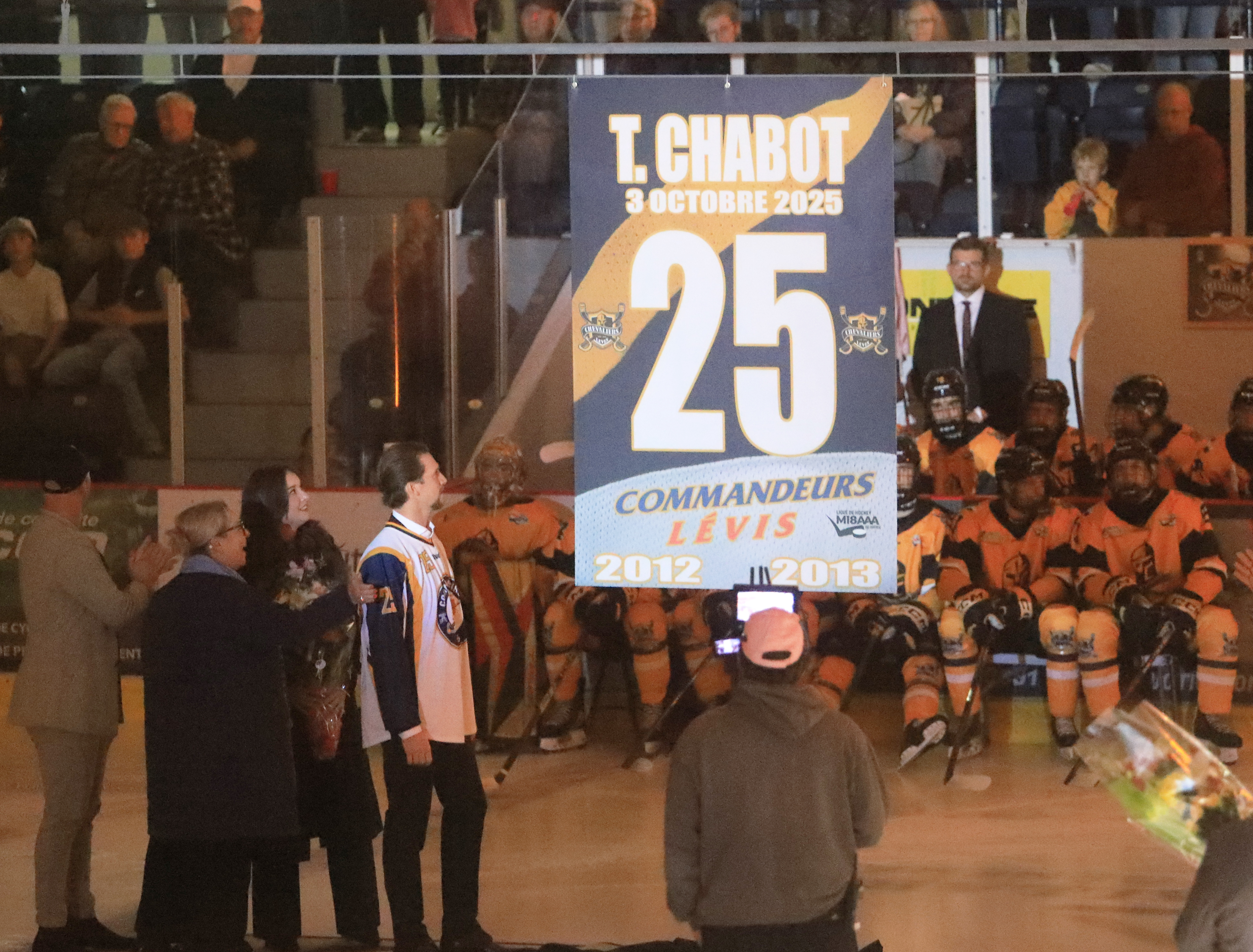 Au cours de cette cérémonie, celui qui a remporté la Coupe du Président avec les Sea Dogs de Saint John en 2017 était accompagné de ses parents, son frère et son épouse. Une vidéo retraçant son parcours dans le hockey a d’abord été présentée, avant que son numéro 25 ne soit officiellement hissé dans les hauteurs de l’Aréna de Lévis.