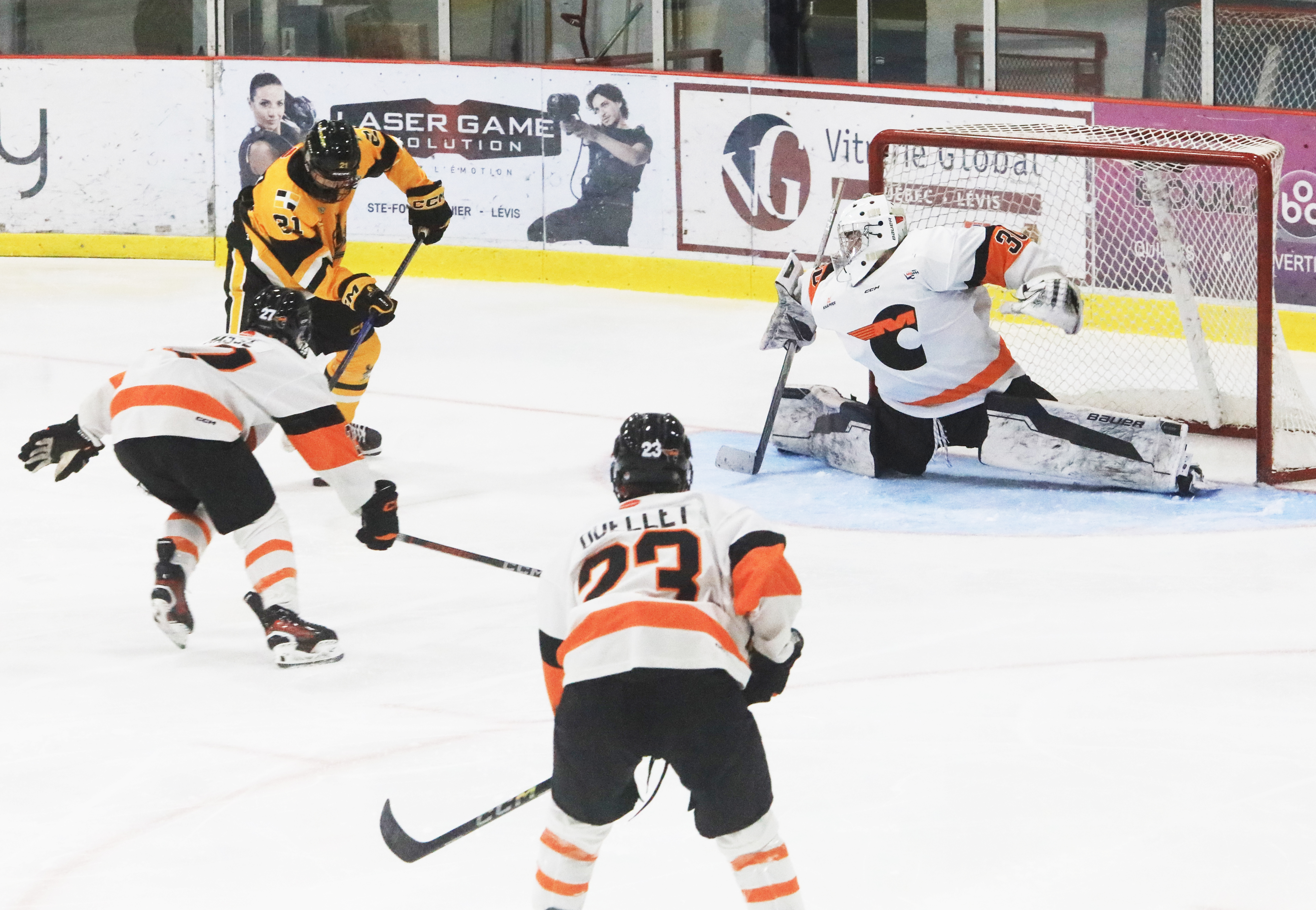 Malgré trois filets des visiteurs au deuxième vingt, Enzo Roy a marqué pour faire 4 à 3 pour Lévis après 40 minutes de jeu. Au troisième engagement, Saint-Hyacinthe a inscrit deux buts rapides, mais Christopher St-Hilaire a enfilé l’aiguille en toute fin de période pour forcer la prolongation. Cette fois, c’est Jacob Boucher qui a joué les héros et Lévis l’a emporté 6 à 5.