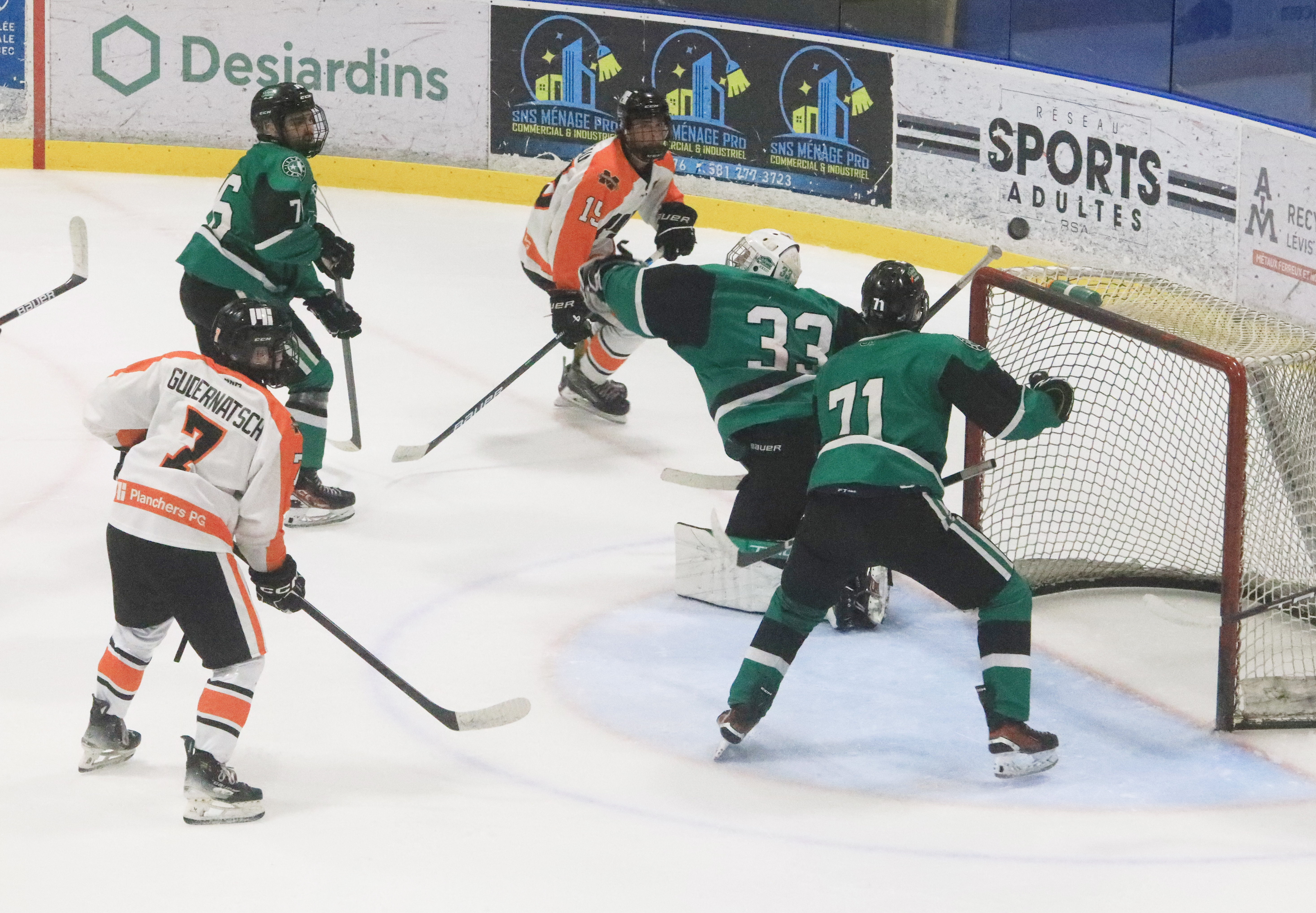 Puis, au dernier engagement, les visiteurs ont inscrit deux filets rapides pour prendre les devants 6 à 5, mais Nathan Corriveau-Vir, Marc-Antoine Dupont et Louis-Pierre Deschênes ont procuré la victoire 8 à 6 à Lévis.
