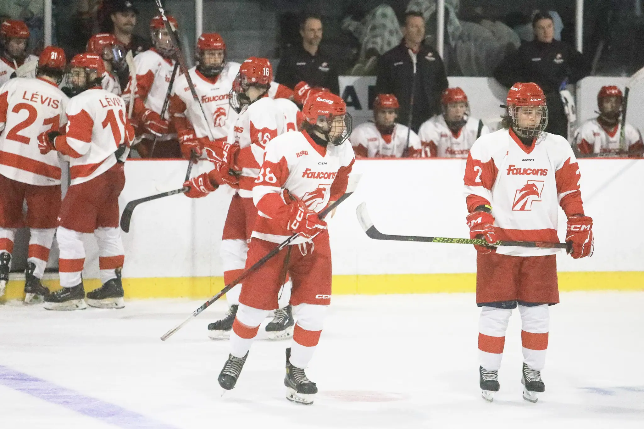 En première période, les Vulkins ont inscrit le seul but, avant d’en ajouter deux autres au deuxième vingt. Les Faucons n’ont pas été en mesure de s’imposer offensivement dans ce match et l’équipe locale a marqué trois autres fois en troisième période pour l’emporter 6 à 0.
