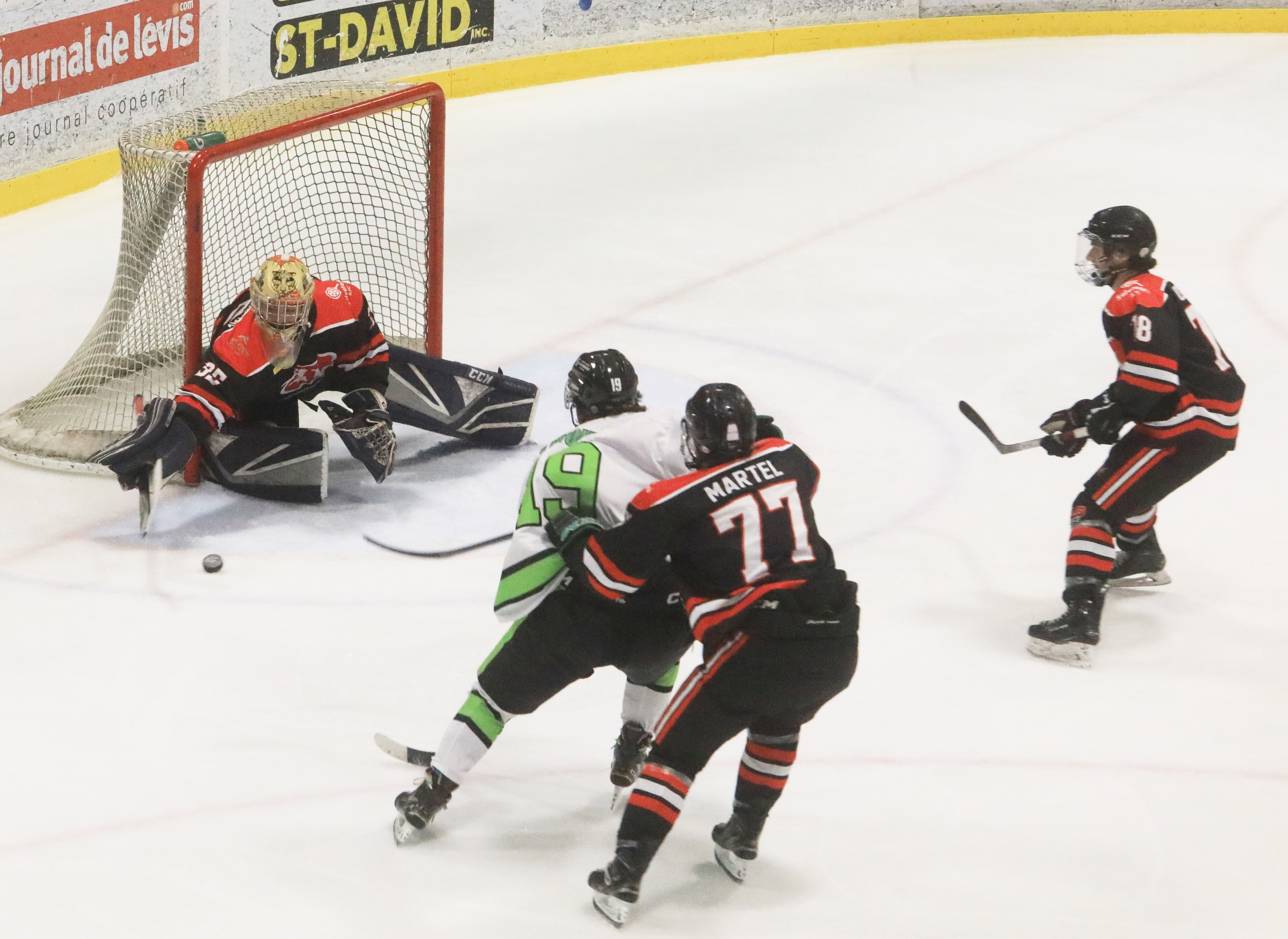 Au deuxième vingt, Nathaniel Aubert a inscrit le seul filet et Vincent Ouellet-Beaudry a ensuite permis à Lévis de prendre les devants 4 à 3 en début de troisième engagement.