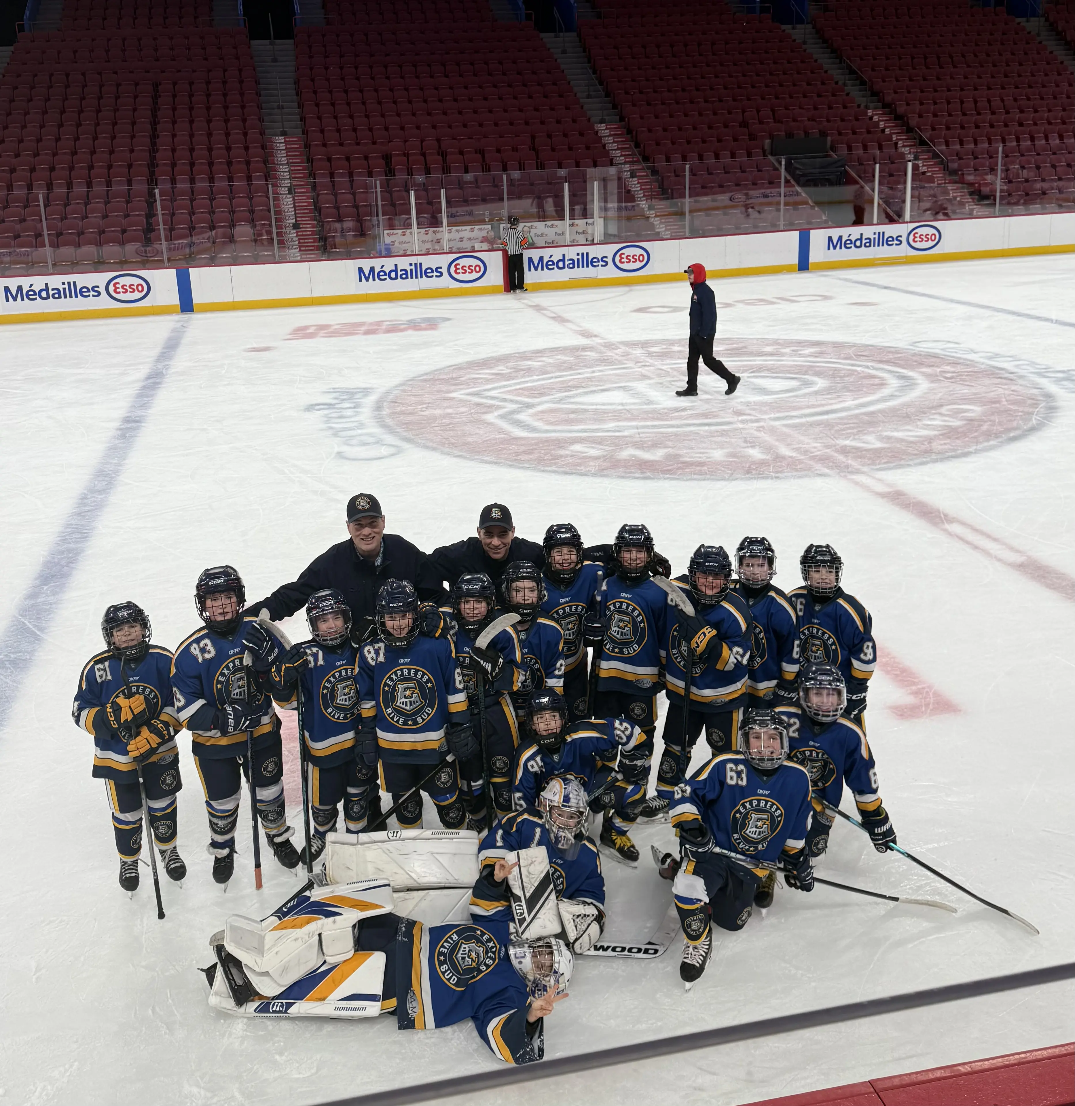 «L’expérience a été tout simplement exceptionnelle. Nous avons voyagé en autobus voyageur avec l’équipe et les parents, puis, à notre arrivée, le personnel du Centre Bell nous a fait faire une visite guidée complète des installations, incluant le vestiaire des Canadiens. Pour des enfants de 9-10 ans, c’était un rêve devenu réalité. Les jeunes ont ensuite fait leur entrée sur la glace au son de la musique des Canadiens, comme les pros», partage Mary-Eve Jalbert.