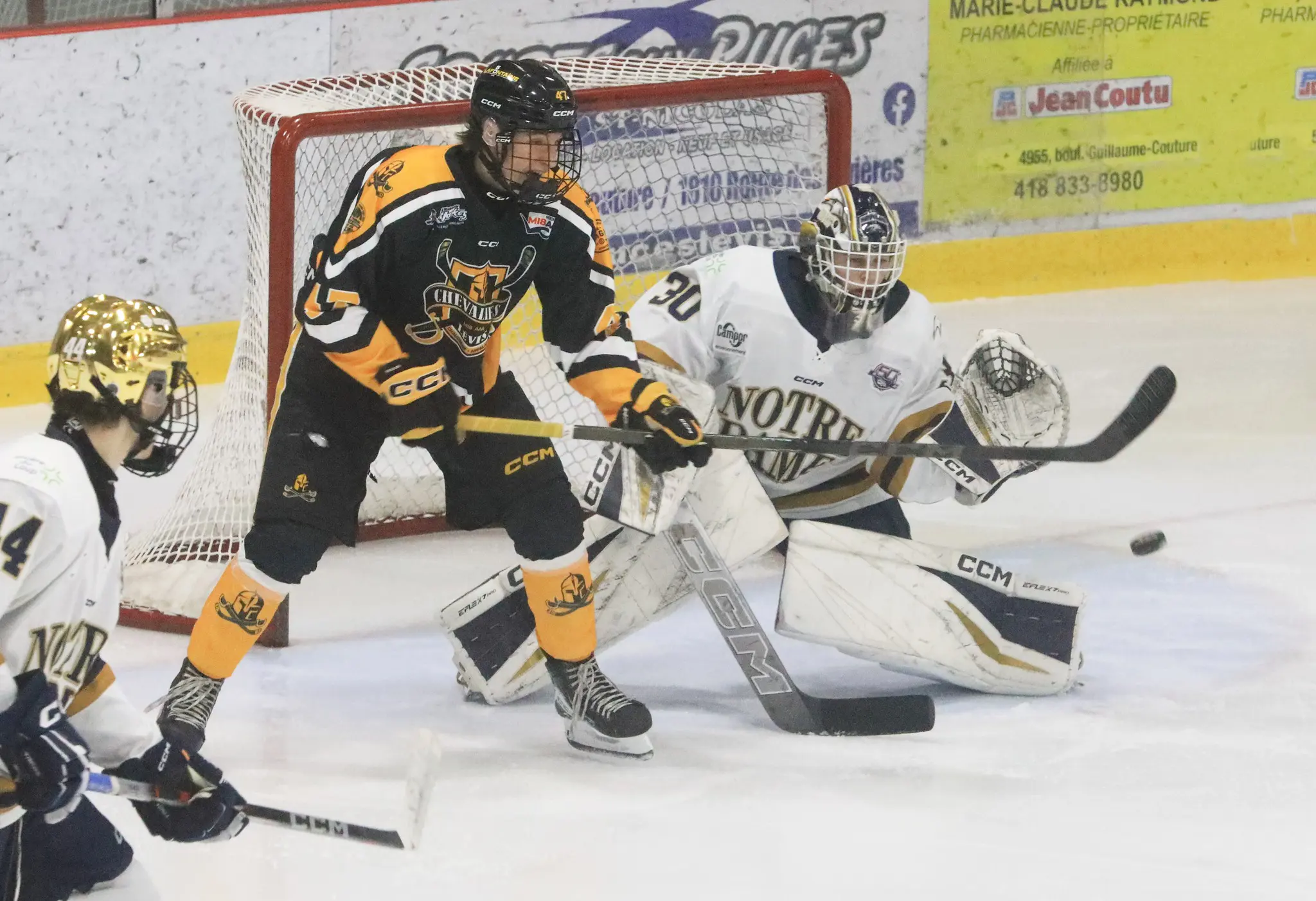 C’est un duel beaucoup plus serré qui attendait les deux formations, si bien qu’il a fallu attendre en deuxième période avant de voir un premier but. C’est Lucas Morin qui a permis aux Chevaliers de prendre les devants 1 à 0, alors que le capitaine Jacob Boucher a ajouté un second but quelques instants plus tard en avantage numérique.