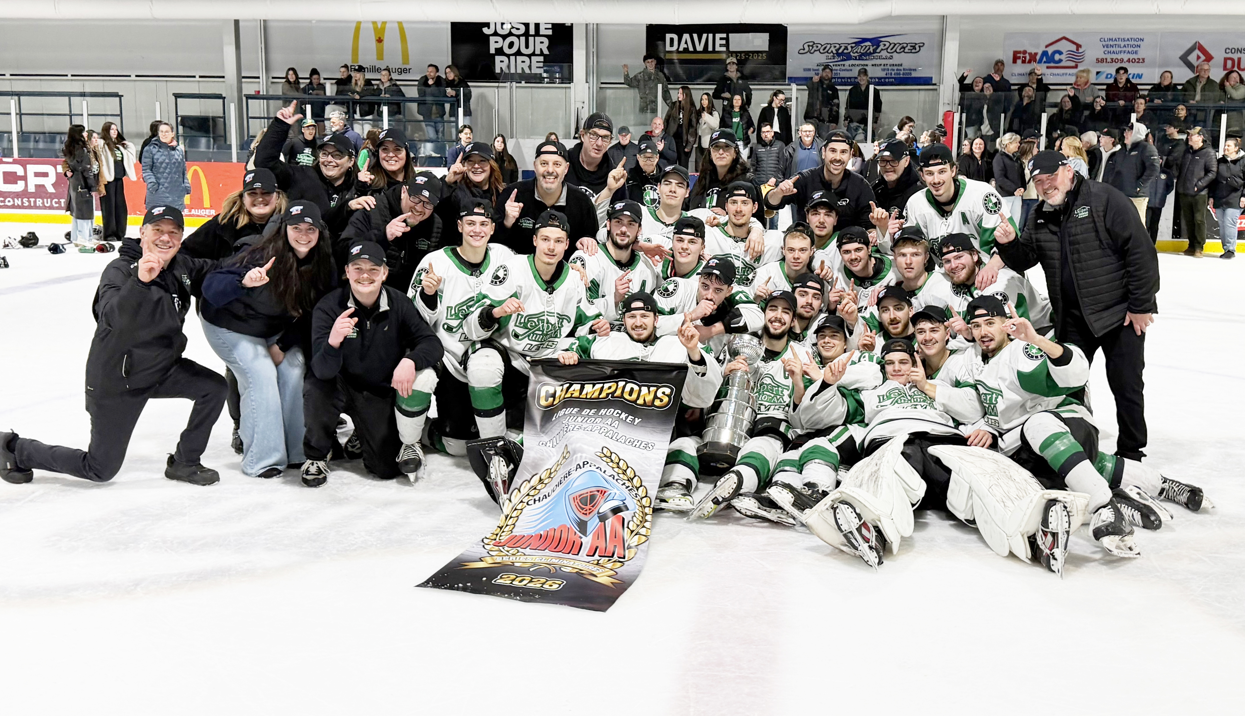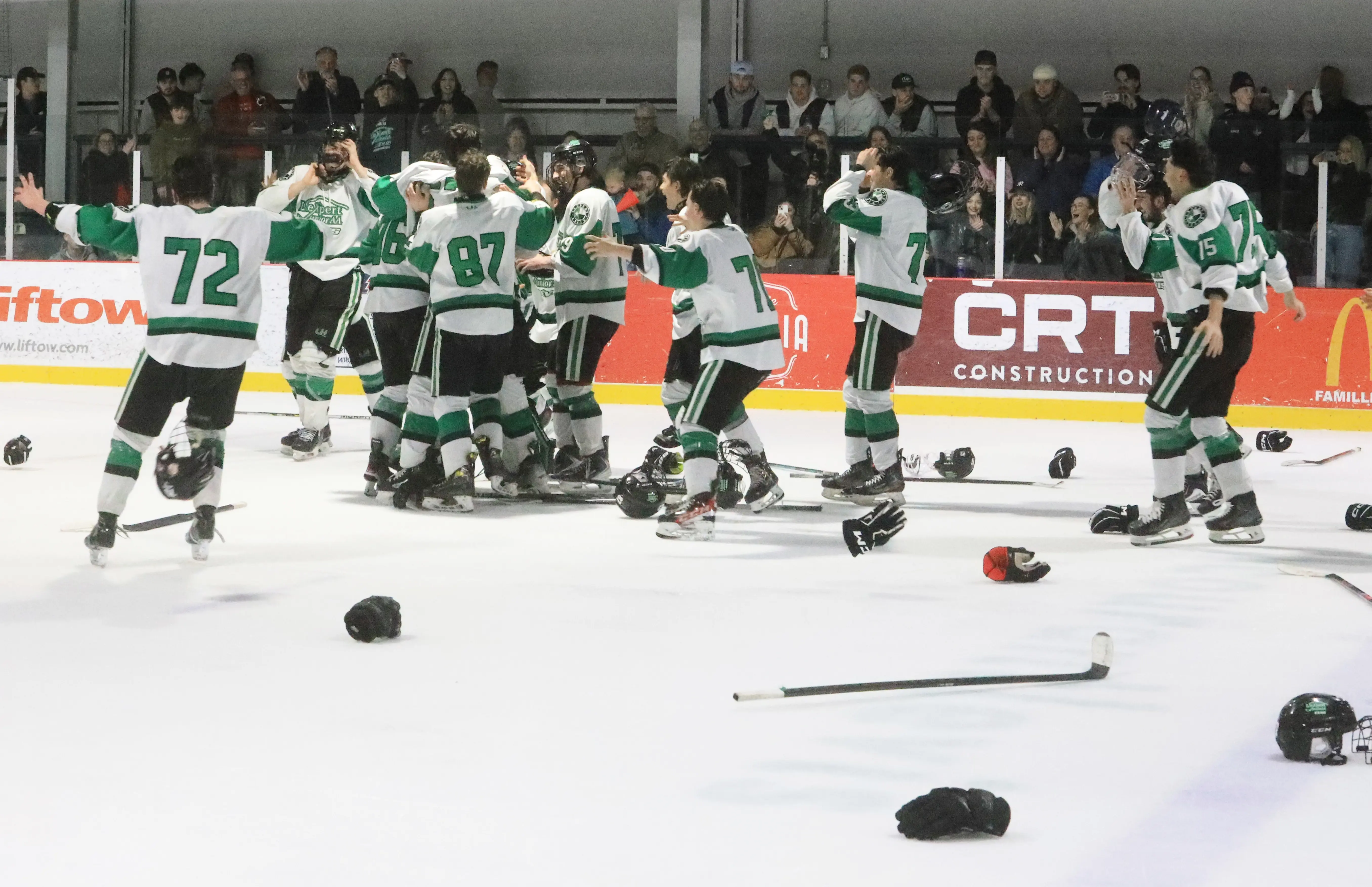 Notre photographe, Gilles Boutin, était présent à la partie et il en a profité pour filmer les festivités d'après-match de l'Expert. -Vidéo : Gilles Boutin«Notre ligue, c’est la plus belle ligue junior de la province. De voir des arénas pleins tout le long, avec des gens assis dans les marches, quand tu te mets à la place des joueurs, c’est la Coupe Stanley. Ça représente beaucoup, personne ne voulait perdre cette partie. On sait que gagner, c’est dur, alors gagner deux fois, c’est encore plus dur. C’est extraordinaire et je pense que ça va être dur à répéter», conclut Alain Déry.