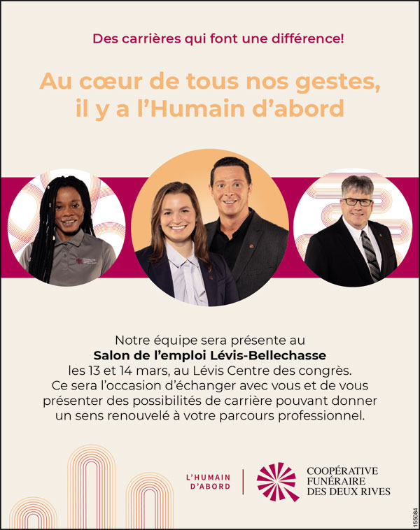 Coopérative funéraire des deux rives Emplois divers Emplois divers POSTULEZ MAINTENANT À: emploi@coopfuneraire2rives.com