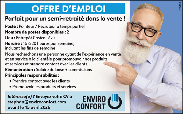 Enviro Confort Pointeur / Recruteur à temps partiel Pointeur / Recruteur à temps partiel POSTULEZ MAINTENANT À: stephan@enviroconfort.com