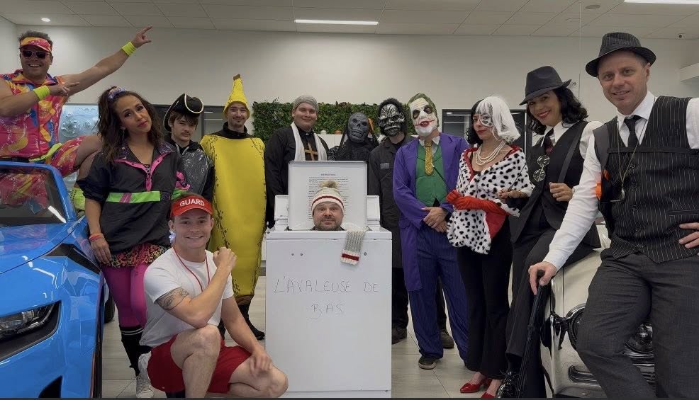 Bernière Auto a fêté en grand avec des costumes imaginatifs et rires garantis : l’esprit d’équipe au top!