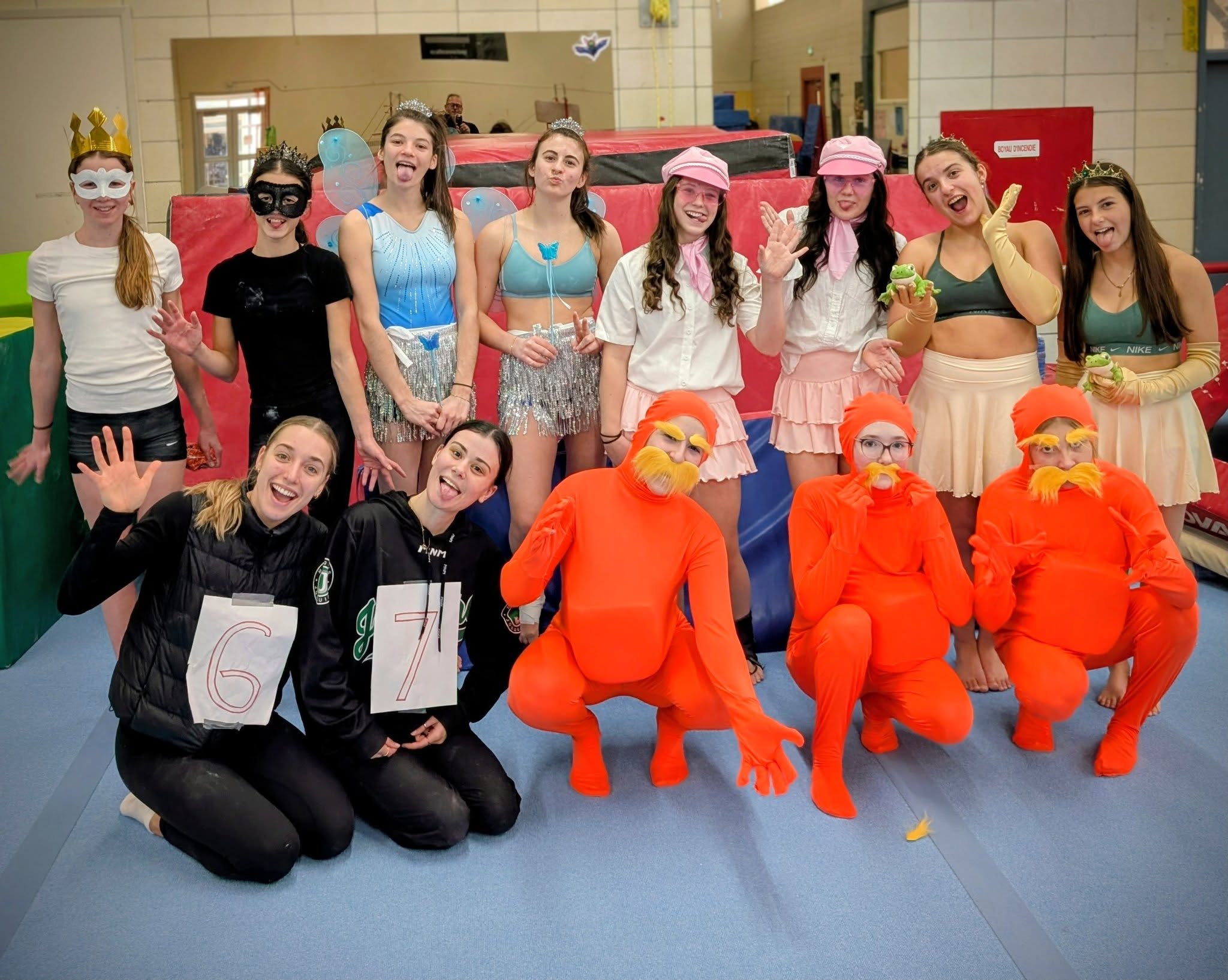 La section sports-études gymnastique et le club l’Envol : entraînement dans la bonne humeur avec des déguisements haut-en-couleurs.