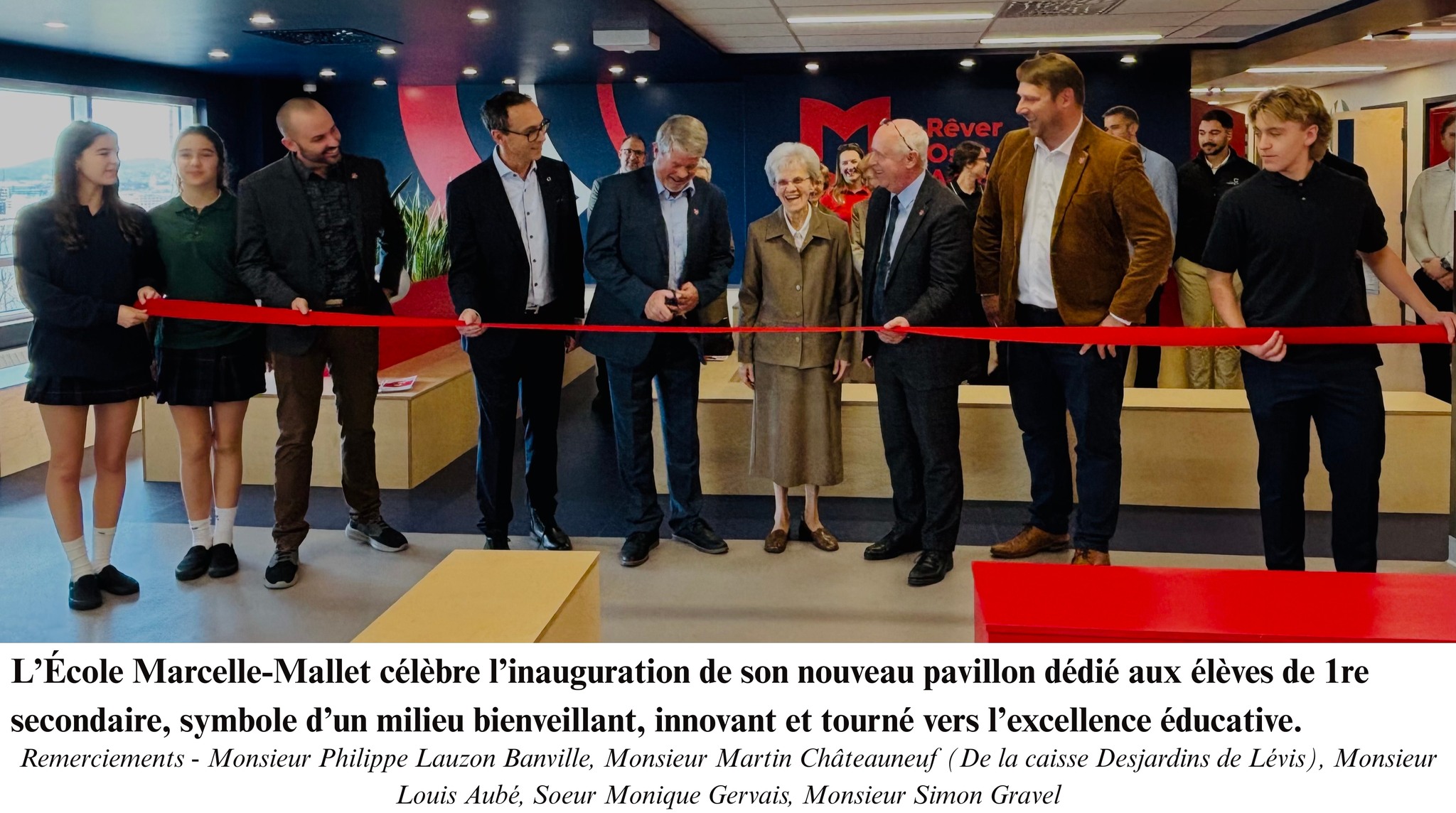 L’école Marcelle-Mallet a inauguré un nouveau pavillon lumineux dédié aux élèves de première secondaire. C’est un lieu axé sur la créativité, la science et les valeurs humanistes qui a été réalisé. Félicitations à toute l’équipe!