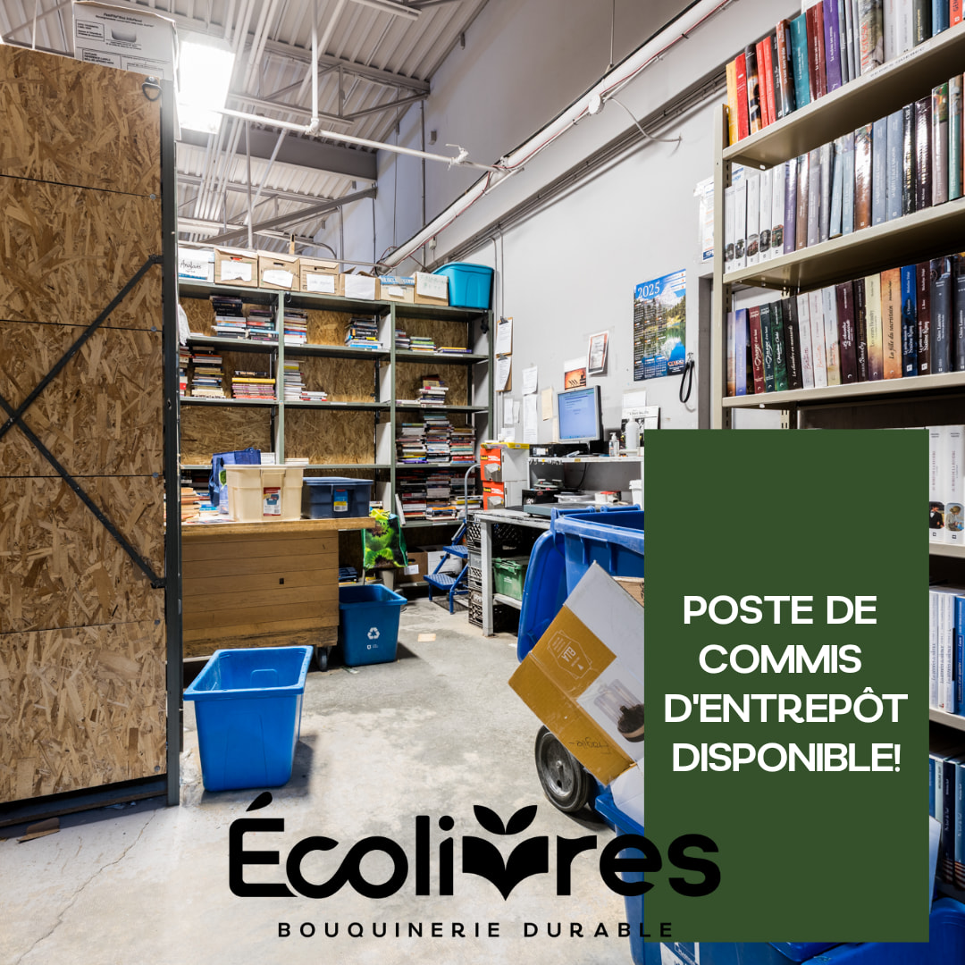 Écolivres est à la recherche d’une personne pour l’aider dans son entrepôt. L’entreprise offre un emploi humain, concret et jamais monotone, avec un horaire variable, pour du travail actif, debout et toujours en mouvement. Il est possible d’aller les rencontrer au 38, rue Charles-A.-Cadieux, à Lévis, ou de les contacter via leur page Facebook ou au info@ecolivres.org.