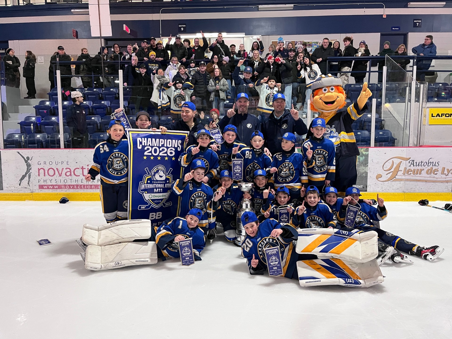 Félicitations au M11 BB3 de l’Express Rive Sud, couronné champion au Tournoi international atome M11 Desjardins de Lévis! Une performance remarquable pour ces jeunes qui ont su allier talent, travail d’équipe et détermination tout au long de la compétition. Bravo aux joueurs, aux entraîneurs et aux parents qui les soutiennent.