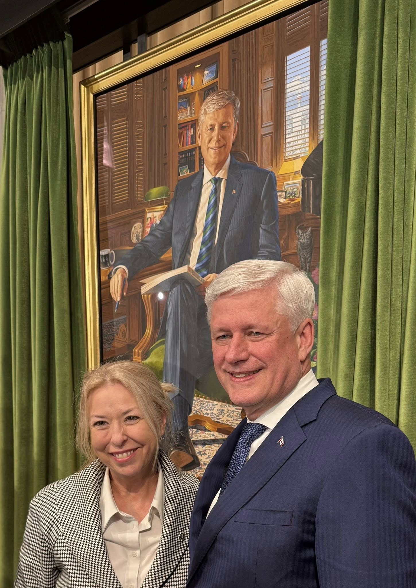 Une belle photo de notre députée de Bellechasse-Les Etchemins-Lévis, Dominique Vien, en compagnie de l’ancien premier ministre du Canada, Stephen Harper. Ce dernier était à l’honneur lors d’une importante cérémonie où son portrait officiel a été dévoilé. Celui-ci sera désormais exposé aux côtés de ceux de ses prédécesseurs. Stephen Harper a été un grand premier ministre, qui a toujours démontré un profond respect pour la langue française, l’histoire du Québec et notre culture. Parmi les centaines de personnes présentes pour souligner le 20e anniversaire de l’élection de son gouvernement, Dominique Vien faisait partie de la fête.