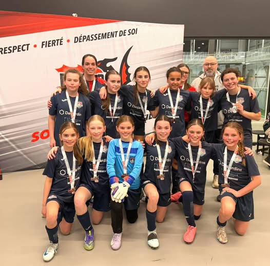Félicitations à l’équipe U11F D1 de l’Association de soccer Chaudière Ouest qui ont remporté la médaille d’argent en U12F D1 au tournoi des Dragons de Drummondville. Les joueuses étaient très fières d’atteindre la finale dans une catégorie supérieure à la leur, et avec raison. Bravo à toute l’équipe et au personnel d’encadrement!