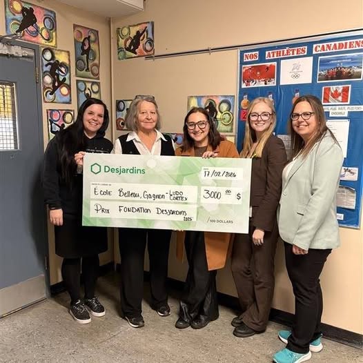 Félicitations à l’École Belleau/Gagnon de Saint-Henri pour l’obtention du prix Fondation Desjardins dans le cadre de leur projet Ludo Cortex qui soutient les élèves à haut potentiel intellectuel grâce à une ludothèque portative. Merci à tous ceux qui se sont impliqués dans ce projet : Jessyka Lord, enseignante, Estelle Gaudreau‑Latulippe, Tanya Beaudin et Rosemary Paré de la Caisse Desjardins de Bellechasse, ainsi qu’Isabelle Côté, directrice de l’école. Vous contribuer à élever les jeunes d’ici dans leur éducation.
