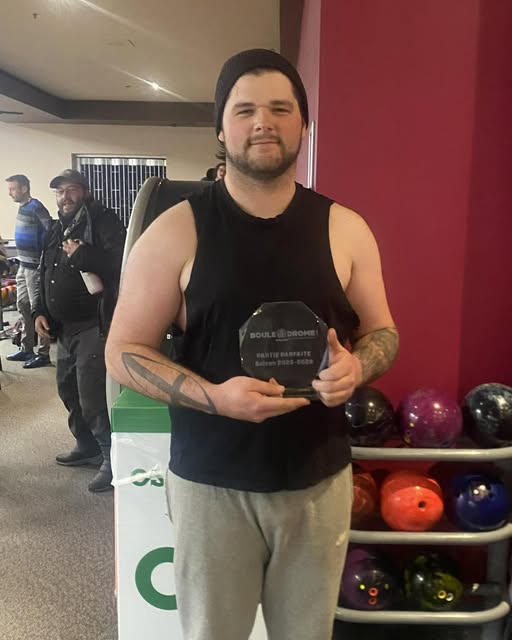Félicitations à William Côté, qui a réalisé une partie parfaite de 300 dimanche lors de la ligue des Bisons des Prairies. Un exploit souligné avec un trophée bien mérité. La saison achève : faites vite pour obtenir le vôtre!