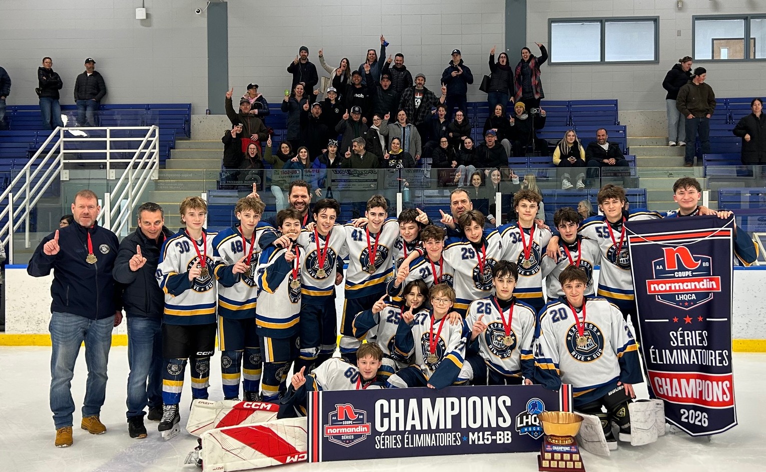 Bravo à L’Express Rive Sud 1, qui a remporté un match serré par la marque de 2 à 1 contre L’Express Rive Sud 3 lors de la finale M15 BB. Les spectateurs ont eu droit à une rencontre intense et disputée jusqu’à la dernière seconde. Les deux équipes peuvent être fières de leur parcours durant les séries. Leur détermination et leur esprit sportif ont marqué cette finale. Félicitations à tous les joueurs et entraîneurs pour cette belle saison.