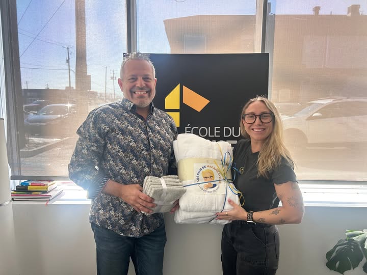 Grâce à la générosité du Club Rotary de Lévis, via les sacs de Mme Sylvie, les jeunes de l’École du Milieu pourront désormais profiter de douches avec du matériel tout neuf. Serviettes et débarbouillettes flambant neuves offriront confort, dignité et bien être au quotidien. Un immense merci à Marco Lefebvre et à toute l’équipe du Rotary pour ce soutien précieux qui fait une réelle différence dans la vie des jeunes.