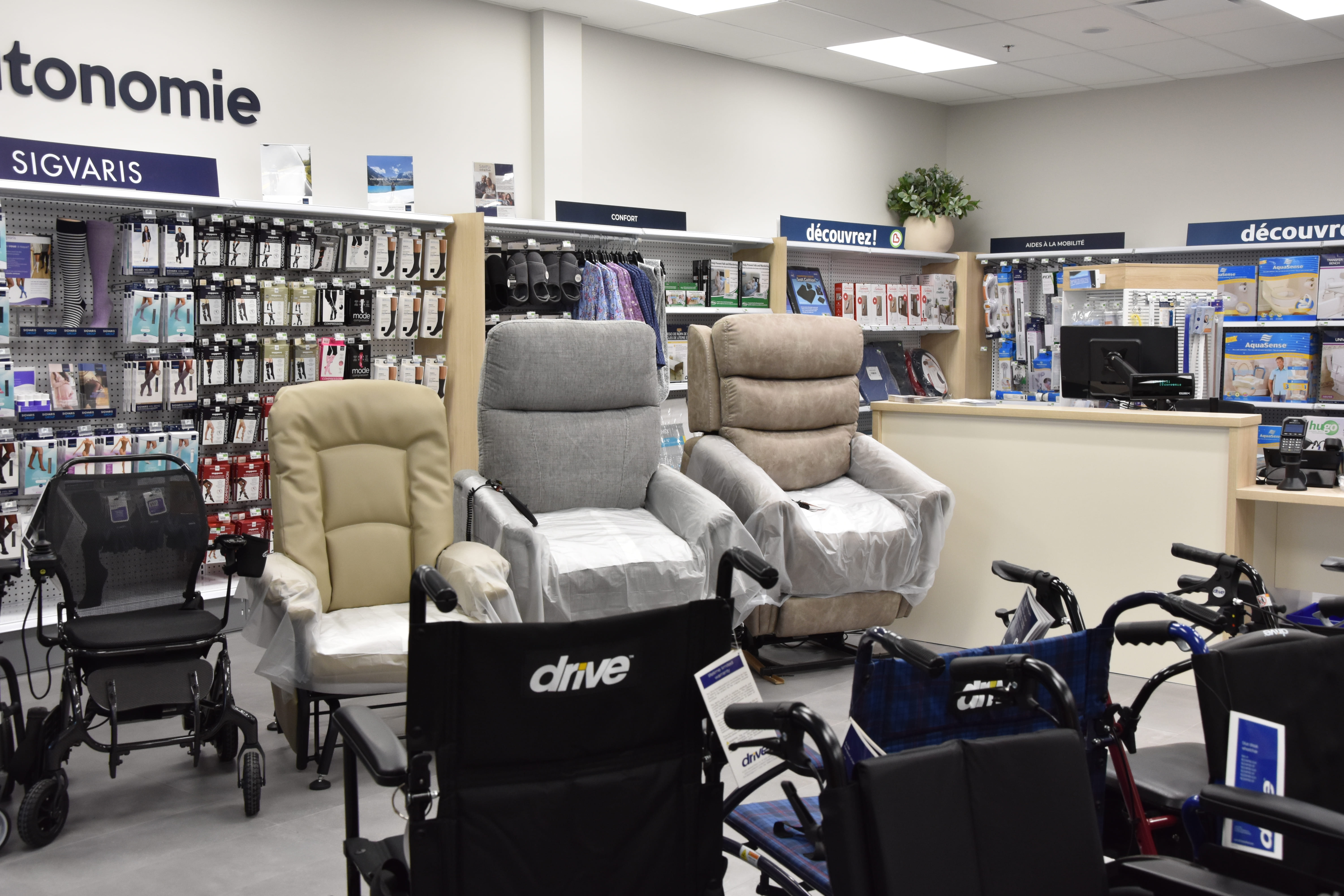 Dans l’ouest de Lévis, l’espace occupe environ 1 000 pieds carrés et les clients peuvent se présenter pendant les heures d’ouverture de la pharmacie pour trouver l’essentiel du matériel qui les aidera au quotidien. Une équipe formée en collaboration avec l'Espace centre d'autonomie de Québec est disponible pour guider les acheteurs et répondre à leurs besoins. De plus, les clients peuvent profiter de la livraison à domicile pour faciliter la transition.