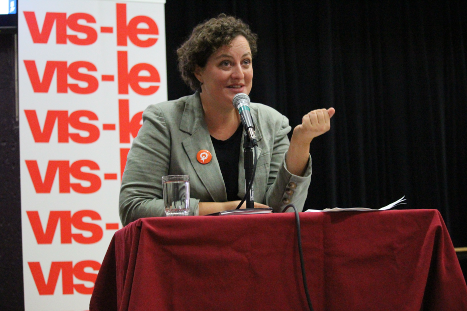 «Notre chiffre de 55 % (pour la réduction des GES), c’est le chiffre du GIEC. Nous n’avons pas le choix, c’est la décennie de la dernière chance. 2030, c’est votre avenir à vous, […] 2030, c’est deux mandats de la CAQ. C’est assez, il faut agir!», a répliqué Valérie Cayouette-Guilloteau, devant un public conquis aux idées de sa formation politique.