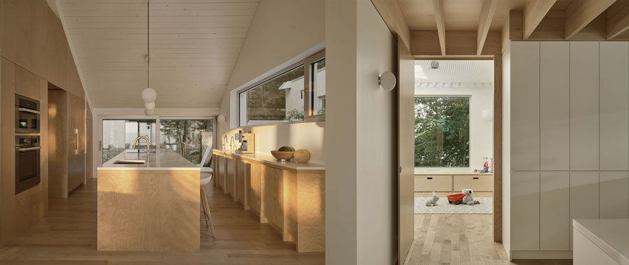 Mudroom, cuisine, arrière-cuisine, salle d’eau, salle de bain des maîtres, salle de lavage, salon, salle de jeux des enfants : chacune de ces pièces reprend des éléments, telles les matières et les couleurs dans la conception et la fabrication du mobilier sur mesure.
