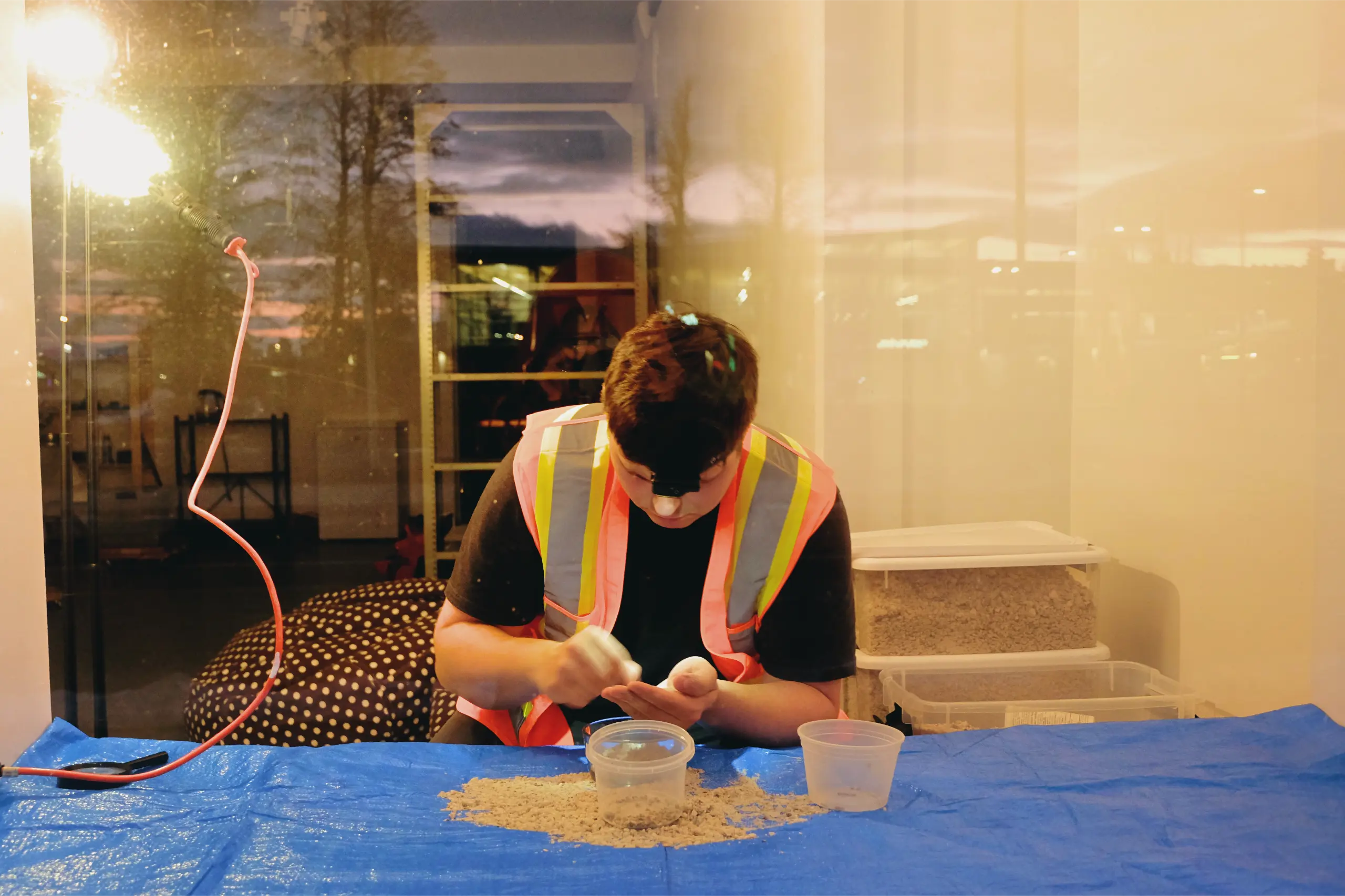 Artiste indisciplinaire, Maxime Sauvage mêle l’art-action, l’installation, la sculpture, la vidéo, l’art sonore, la microédition et la création de structures communautaires dans sa pratique. Ce dernier termine actuellement une maîtrise en arts visuels à l’Université Laval.