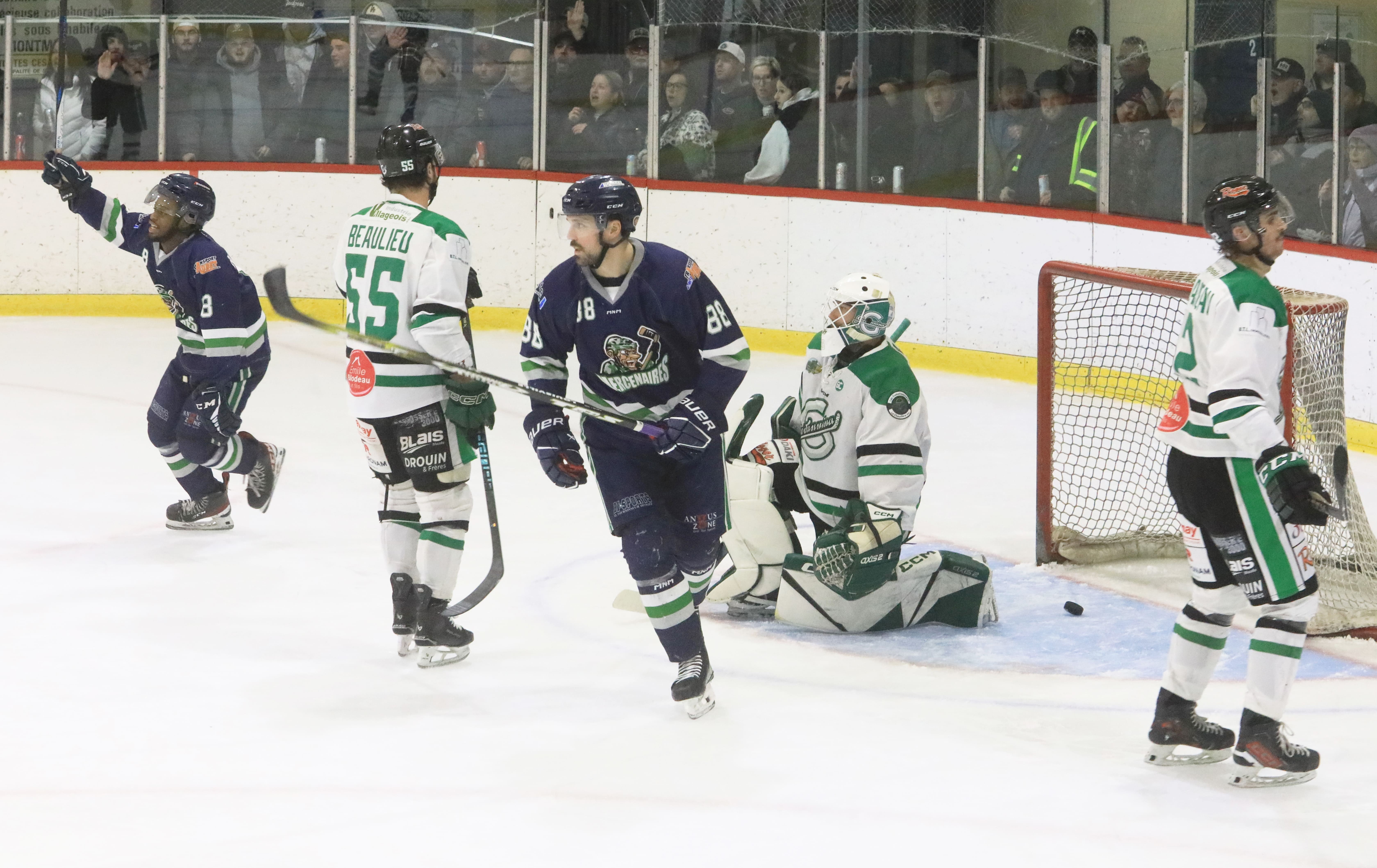 En début de troisième période, les Mariverains ont réduit l’écart à un seul filet. Cependant, les Mercenaires n’avaient pas dit leur dernier mot. Jordan Hawey, Serin Ntibashoboye et Mathieu Blanchet, dans un filet désert, ont tous ajouté un but à leur fiche et rendu la victoire inaccessible aux visiteurs.