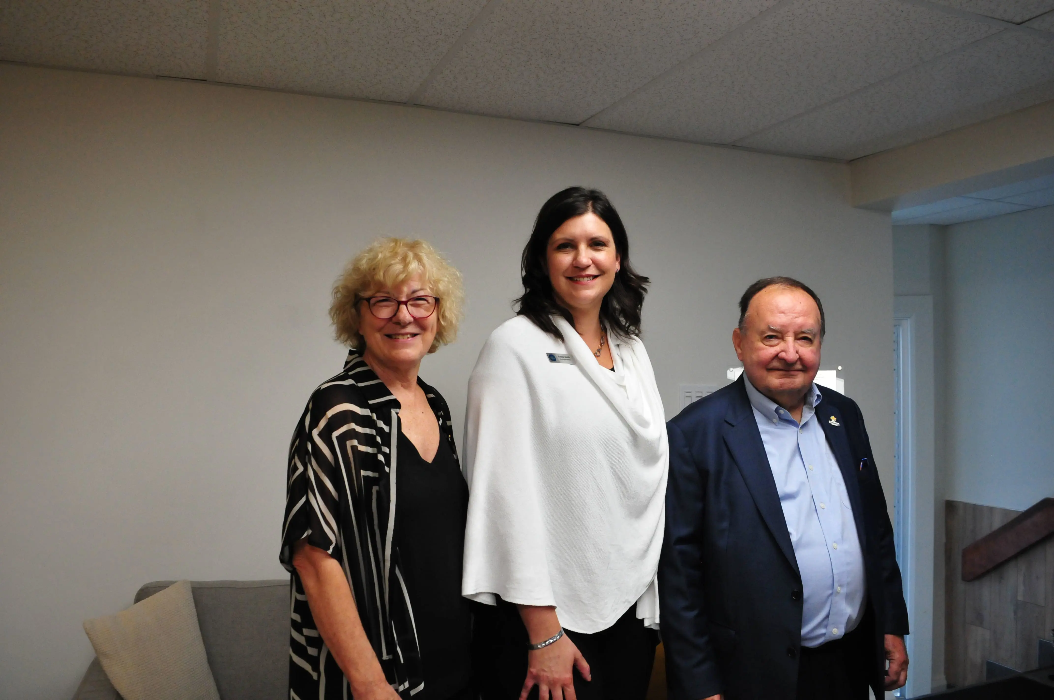 Marie-Hélène Blanc, directrice générale de Présence Lotbinière, Amélie Smith, ambassadrice de la campagne de financement, Pierre Julien, président du conseil d'administration de Présence Lotbinière. Photo: Mélanie Labrecque