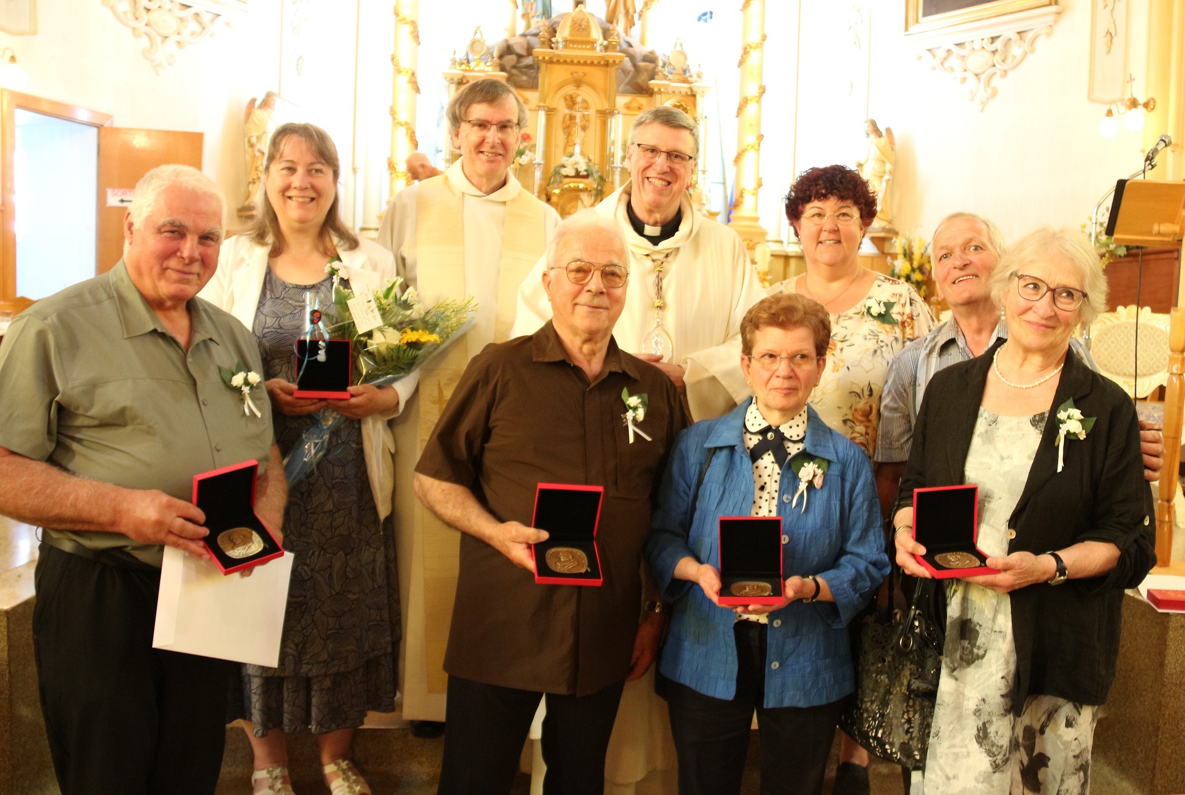 Sept bénévoles qui œuvrent ou ont œuvré au sein de la paroisse Sainte-Élisabeth-de-Lotbinière ont été honorés le 1er juin dernier dans le cadre du 350e anniversaire de Fondation du diocèse de Québec. Cette célébration a réuni 200 personnes à l’église de Saint-Flavien.